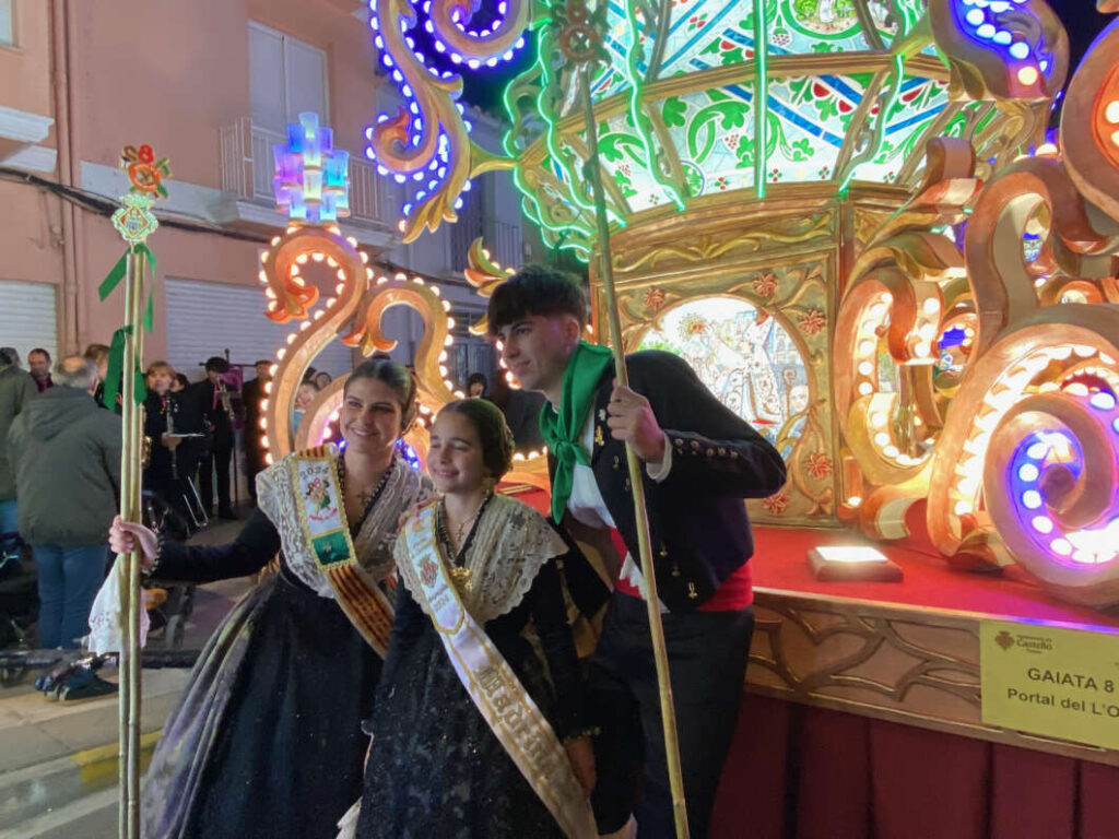 La primera en salir fue la Gaiata de la Fundación Bancaja, un monumento que estuvo acompañado por los representantes de la Germandat dels Cavallers de la Conquesta y su Na Violant D’Hongría.