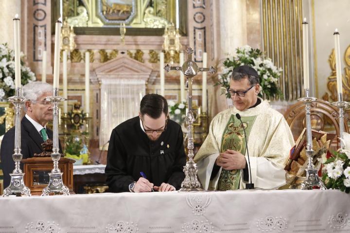 El acta, una vez leída se firmó junto al altar. En ausencia de María José Vicent por enfermedad, firmó el documento su hijo Carlos Martí Vicent, miembro de la Asociación de 'pal.liers'.