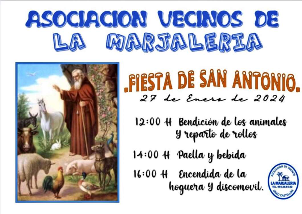 La Asociación de Vecinos de la Marjalería de Castellón ha convocado para el sábado, 27 de enero, la celebración de su Fiesta de San Antonio.