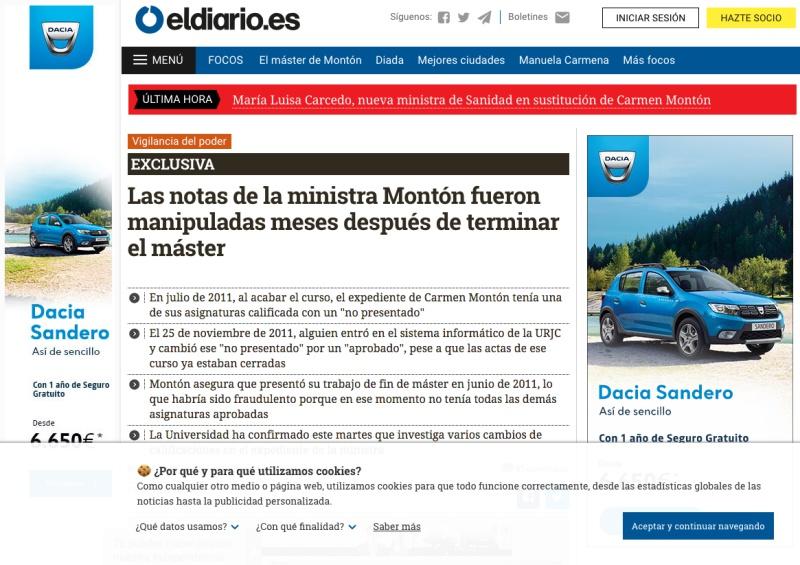 Tal como publicó Eldiario.es, las cosas no estaban claras: "Las notas de la ministra Montón fueron manipuladas meses después de terminar el máster"