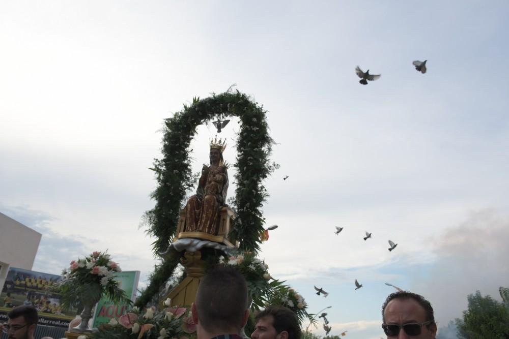 Vila-real ha agafat forces després d’un intens matí per a rebre a la seua patrona, la Mare de Déu de Gràcia. A les 18.00, la imatge de la ‘Moreneta’ ha eixit des de l’ermita fins a la plaça del Llaurador, on al carrer de Blasco Ibáñez, al costat de l'Estadi de la Ceràmica, s’han concentrat penyes, entitats, veïns i veïnes per a participar en l’ofrena.