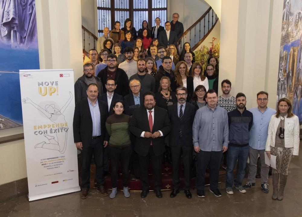 La cuarta edición del programa ‘Move Up! Emprende con éxito’, impulsado por CEEI Castellón y Diputación de Castellón, ya está en marcha. El presidente de la Diputación, Javier Moliner, ha abierto esta mañana en el Palacio Provincial la inauguración oficial del programa formativo, que cuenta con la participación de 25 iniciativas empresariales, de las cuales 15 son lideradas por mujeres. Los proyectos participantes han sido presentados en la sesión de esta mañana por emprendedores de Almassora, Altura, Betxí, Burriana, Torreblanca, Vall d´Alba, Vall d´Uixó, Vila-real, Vistabella, Vilafamés y Vinaròs. Sus ámbitos de actuación abarcan desde la impresión 3D a las aplicaciones informáticas, la comida saludable, la micología, los Recursos Humanos, la fotografía o las disciplinas deportivas, entre otros.