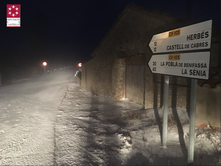De momento no ha sido necesario activar ningún medio del dispositivo ante la situación, pero los efectivos del parque de Els Ports ha estado revisando esta tarde equipos quitanieves por si fuera necesario su movilización. En la zona de Els Ports y la Tinença de Benifassà continúa nevando con situaciones de ventisca debido al fuerte viento.