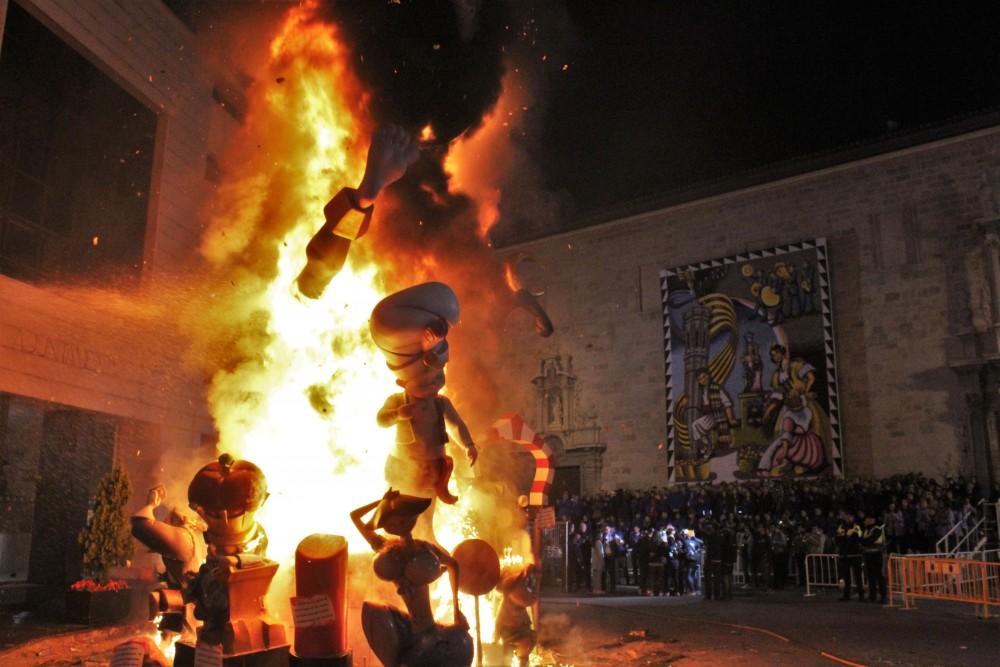 entre en la falla Plaça Els Pescadors, aquest matí també s'ha realitzat la missa, la cercavila, el vi d'honor i la mascletà a càrrec de la pirotècnica Lluch. Per la nir s'ha celebrat la cremà acompanyada d'un castell de focs artificials.