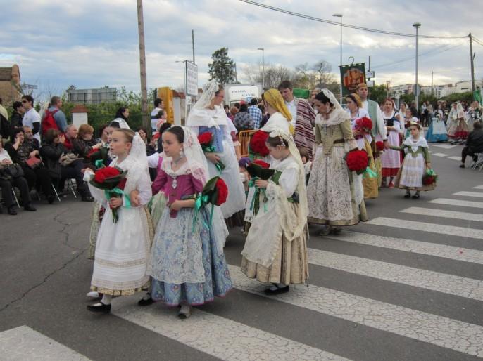 Representantes de la ciudad, asociaciones culturales y de vecinos, centros regionales, collas, comisiones de las 19 Gaiatas, representantes de las Fallas de la Comunitat y miles de personas han querido participar en este acto con su ofrenda floral, que tenía como destino final la Basílica de la Mare de Déu del Lledó.