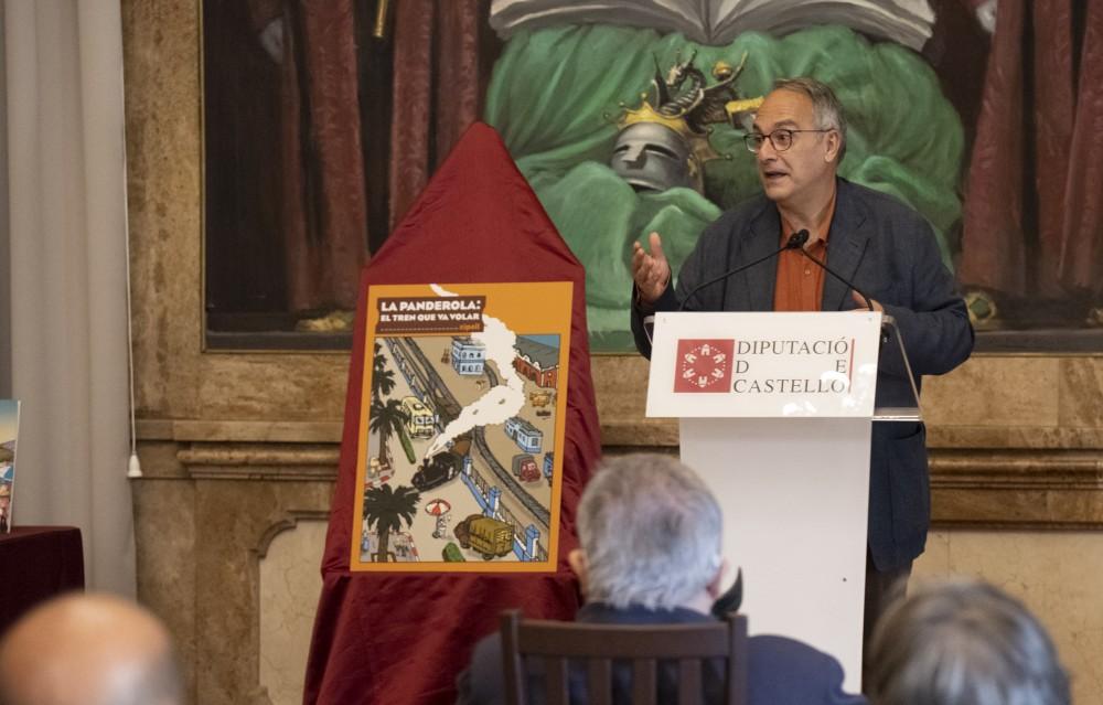 La Diputació de Castelló ha presentat aquest matí el nou còmic 'La Panderola' al costat de l'Acadèmia Valenciana de la Llengua i l'Associació d'Amics del Ferrocarril de Castelló (Aafcas). Es tracta d'una edició de literatura infantil i juvenil, creada pel vinyetista castellonenc Xipell, en la qual es pretén donar a conéixer la història del famós tren i fomentar la lectura en valencià. A l'acte de presentació han assistit la diputada de Cultura, Ruth Sanz; el president de l'Acadèmia Valenciana de la Llengua, Ramon Ferrer; el primer tinent d'alcalde d'Almassora i diputat d'Hisenda, Santiago Agustí; Raúl Soria, regidor de l'Ajuntament de Betxí; Ascensió Figueres com a representant de l'Ajuntament d'Onda i primera presidenta de l'Acadèmia Valenciana de la Llengua; l'autor, Joan Montañés Xipell, i el representant d'Aafcas, Juan Peris.