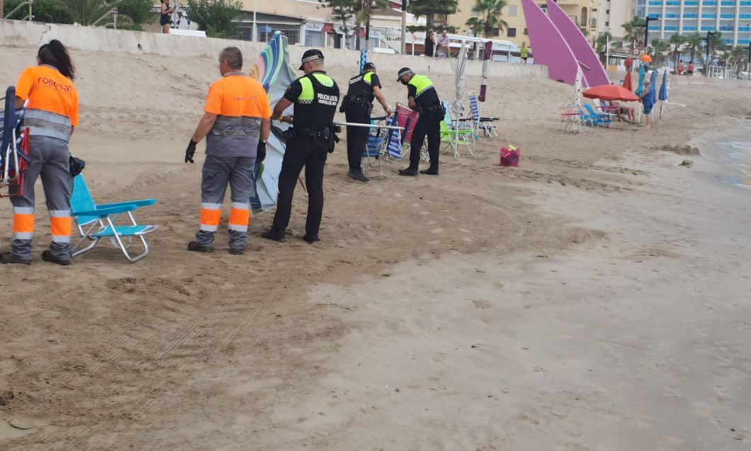 Los objetos retirados han sido sillas y sombrillas que estaban en la primera línea de playa sin ocupar por ninguna persona y que de forma habitual se instalan a primera hora de la mañana por algunos bañistas para tener un buen sitio frente al mar cuando bajan a la playa más tarde. La normativa está vigente desde agosto del año 2020.