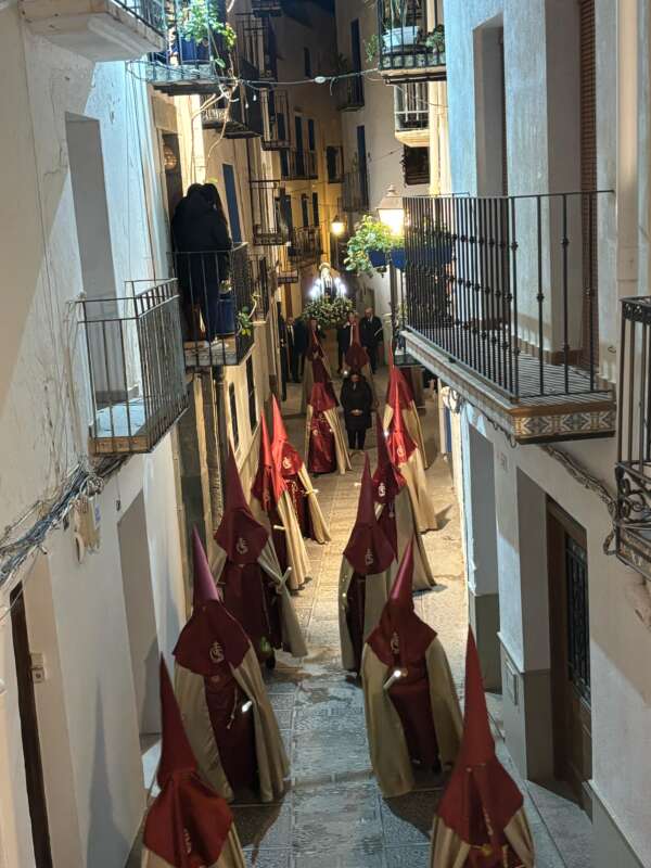 El nucli històric de Peñíscola es va convertir, un any més, en l’escenari d’una de les manifestacions més sentides de la Setmana Santa. A partir de les deu de la nit, el so solemne de la percussió i el pas compassat dels confrares van marcar l’inici de la processó de Dijous Sant, que va recórrer els carrers empedrats de la ciutatela sota la mirada atenta de milers de visitants.