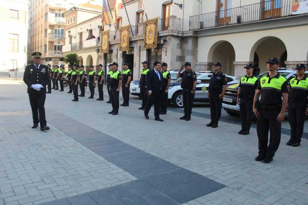 El Ayuntamiento de la Vall d'Uixó ha celebrado el Día de la Policía, con la ya habitual formación en la plaza del Centro, a la que la alcaldesa, Tania Baños, el concejal de Seguridad Ciudadana, Javier Ferreres, y el jefe de la Policía Local, Ángel Giménez, han pasado revista. Por tercer año consecutivo en este acto oficial también se han realizado las felicitaciones públicas y se han entregado las medallas al mérito del cuerpo a agentes y civiles.