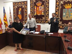 2. A la agente Dolores Rosa Nebot Vicente de la Policía Local de la Vall d'Uixó tras una reconocida y larga trayectoria en el año de su jubilación.