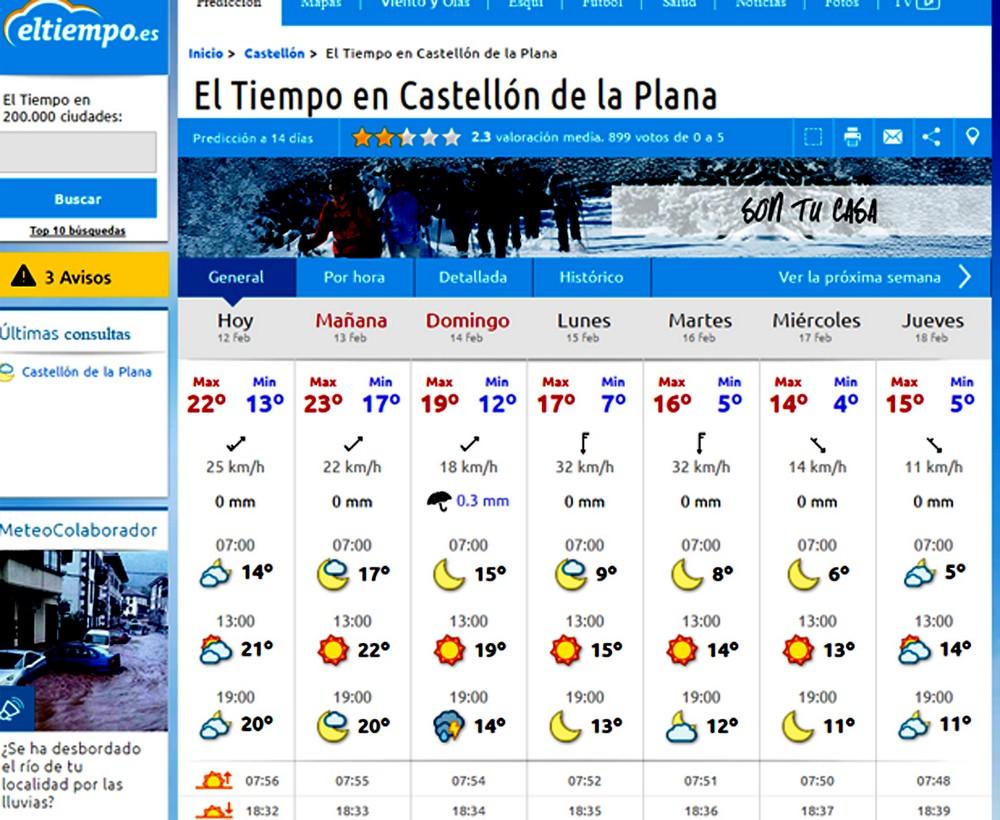 La provincia de Castellón se encuentras incluida en el mapa de avisos por alerta amarilla de la Agencia Estatal de Meteorología. La alerta de Castellón está declarada, fundamentalmente, por el riesgo de que soplen fuertes vientos, que en el caso del interior norte y sur podrían llegar a los 90 Km/h el sábado y de 80 Km/h el domingo, de componente oeste.