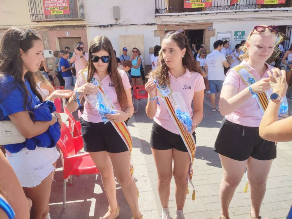 Después, y al ritmo marcado por la banda de música y mientras el ayuntamiento obsequiaba a todos los asistentes con vino local, las representantes festeras han repartido la pulsera oficial de las fiestas entre todos los vecinos.