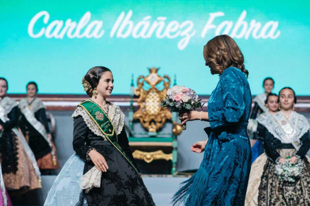 Y la magia hizo el resto, la Reina Infantil, Carla Ibáñez Fabra caminó rumbo al escenario arropada por los aplausos de todo el Palau puesto en pie mientras sonaba la música de pasodoble de ‘Los lanceros de la Reina’.