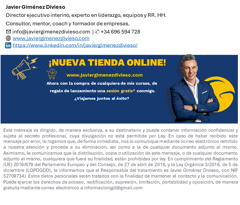 Javier Giménez Divieso. Directivo freelance experto en liderazgo, equipos y RR.HH
