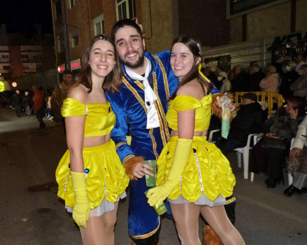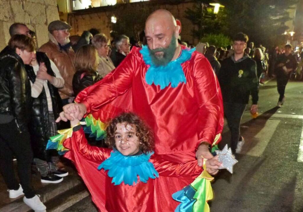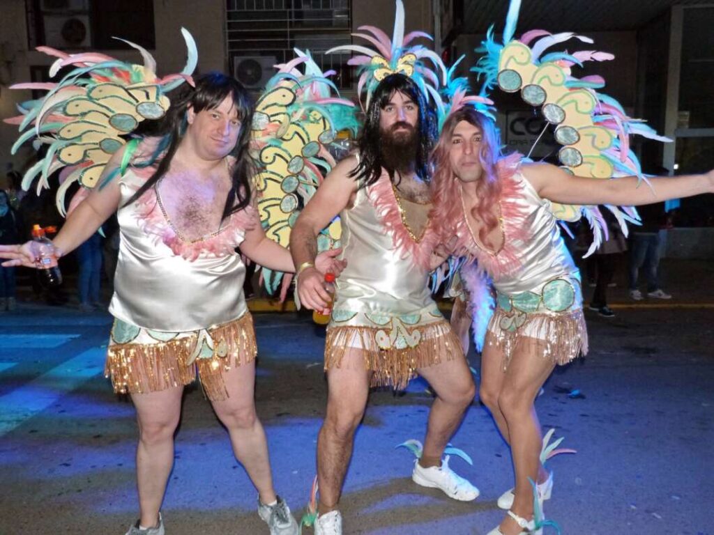 Las 30 reinas y el único rey brillaron con luz propia con sus majestuosas fantasías, que desvelaron el sábado anterior, en lo alto de las carrozas. Los disfraces de calle mucho más pequeños, pero igual de coloristas. Trajes con plumas, lentejuelas, arcoíris, … Además, algunas comparsas cuentan también con carroza bar para abastecer a los comparseros e incluso al público.