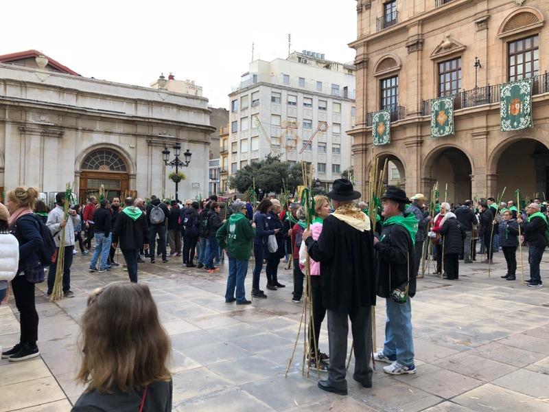 La salida de la Romeria de Les Canyes recupero las tradiciones recogidas en la Consueta. No se forzó a nadie a entrar en la concatedral de Santa María, pero la alcaldesa y el presidente de la Generalitat lo hicieron, como parte de la Comitiva oficial y como representantes de la ciudad y de la Generalitat. No hubo aplausos, pero tampoco abucheos, y la Romería volvía a la normalidad. La plaza estaba llena, tanto como las calles, llenas de romeros, para acompañar a la Comitiva hasta el Primer Molí, donde la Romeria inicia el camino por la huerta.