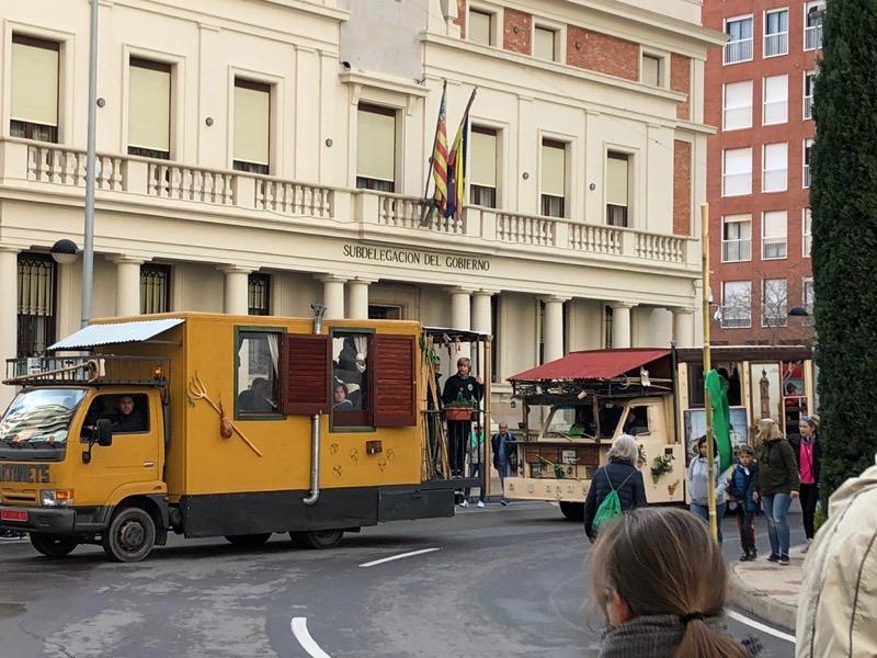 La comitiva avanzó por la calle Mayor, la plaza María Agustina y la avenida Capuchinos, para dirigirse al Primer Molí, donde se hizo el primer alto en el camino.