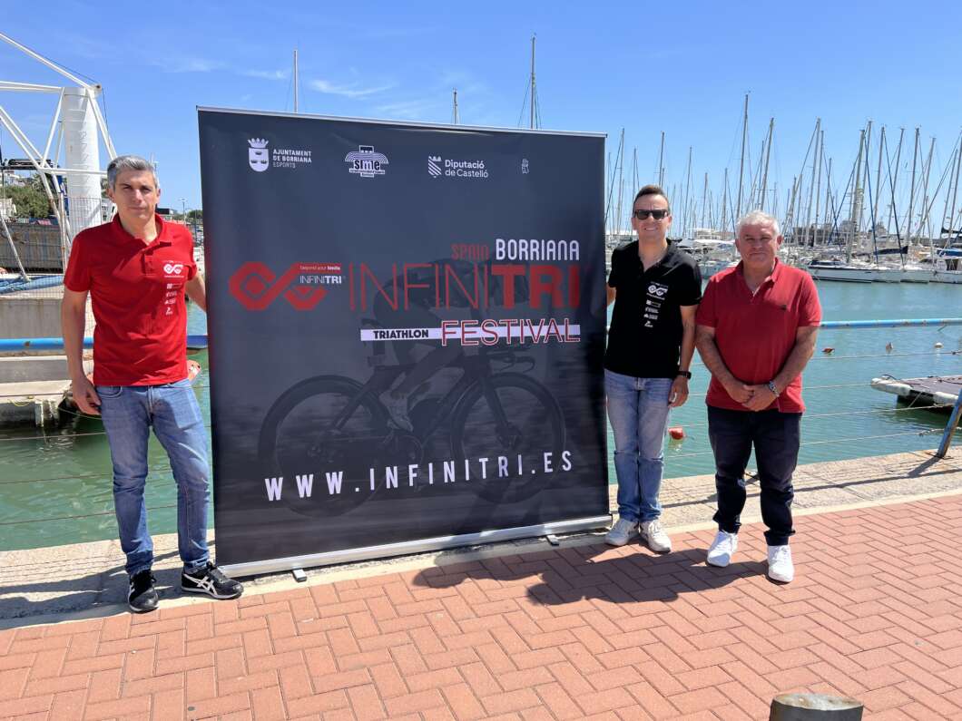 El regidor d'Esports, Vicent Aparisi, i els representants d'Infinitri Sports Premium Events, Alberto Fernández i Manu García, han presentat en les aigües del port de Borriana la segona edició Infinitri Borriana Triathlon Festival, l'esdeveniment esportiu en què més de 400 participants es donaran cita el pròxim 17 de juny a la platja de l'Arenal.
