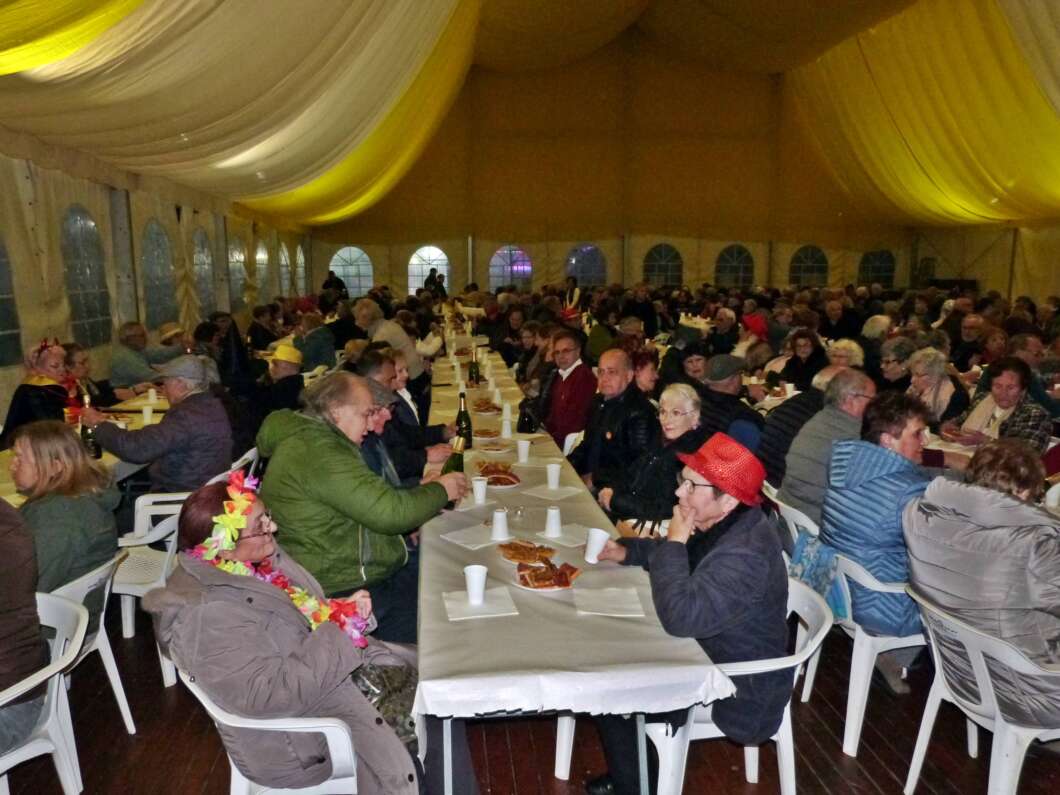 Los asistentes al acto han degustado ‘cocs’ y cava en las mesas que se han instalado por parte de la Comisión Organizadora del Carnaval (COC) en la gran carpa situada junto al recinto del carnaval.