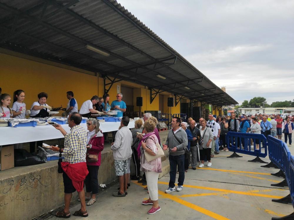 La lonja del puerto ha acogido esta mañana la tradicional sardinada popular, un acto conjunto organizado por el Ayuntamiento de Peñíscola con la colaboración de la Cofradía de Pescadores San Pedro de la localidad.