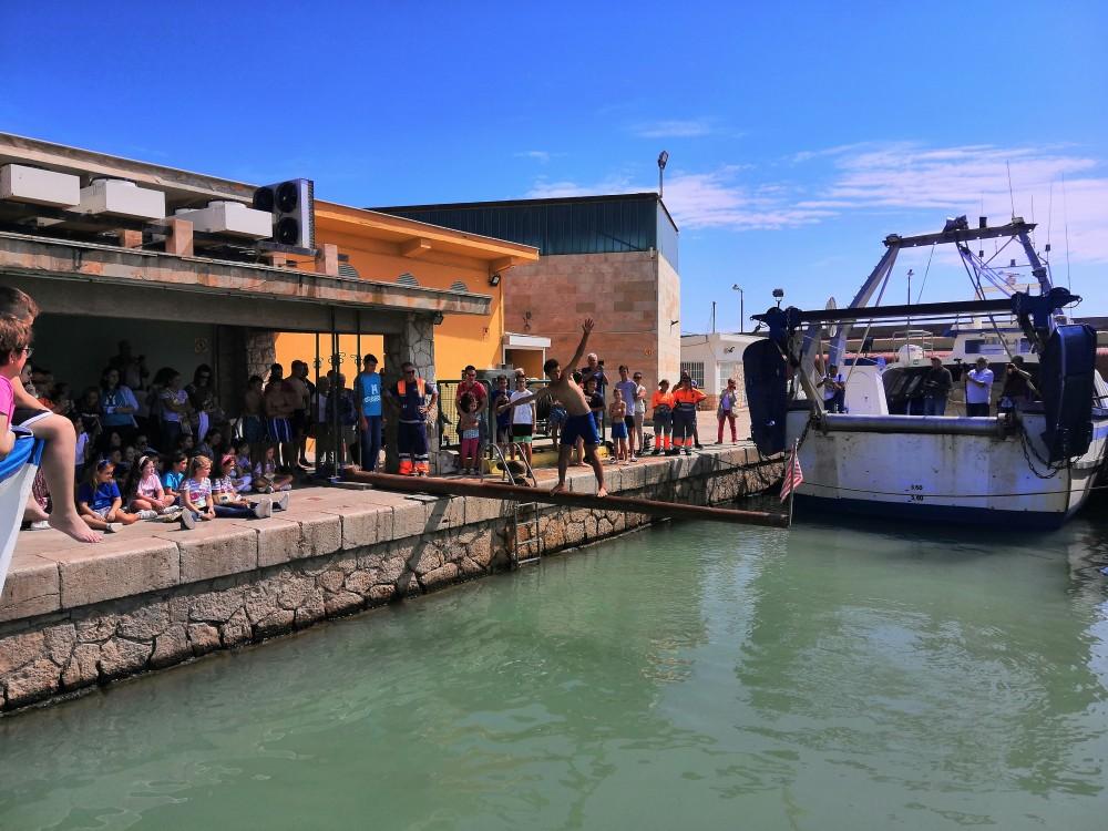 Al finalizar este acontecimiento multitudinario, en el mismo recinto portuario, ha llegado el turno de celebrar los juegos acuáticos. Los más jóvenes del municipio han participado en el "palo enjabonado" y en el sorteo de objetos hinchables.