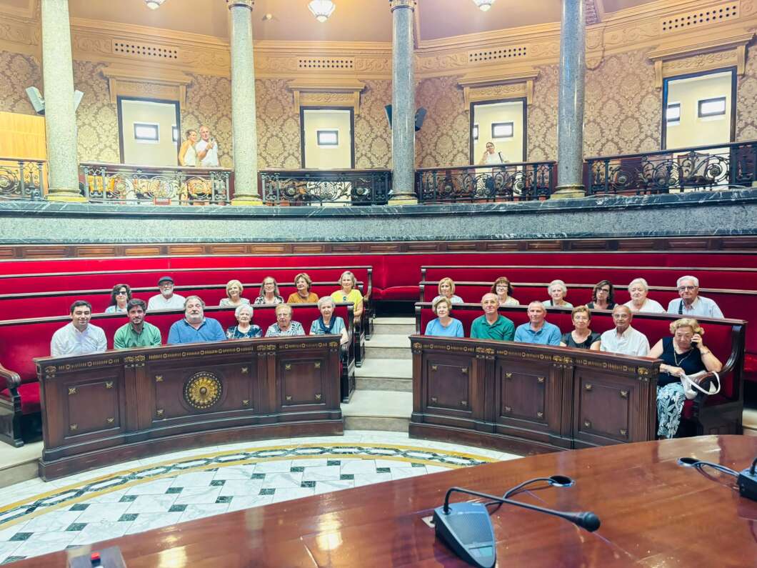 Los alumnos de la UNED Sénior de Almassora han visitado el Ayuntamiento de València, donde han conocido de primera mano las diferentes dependencias municipales, como el salón de plenos.
