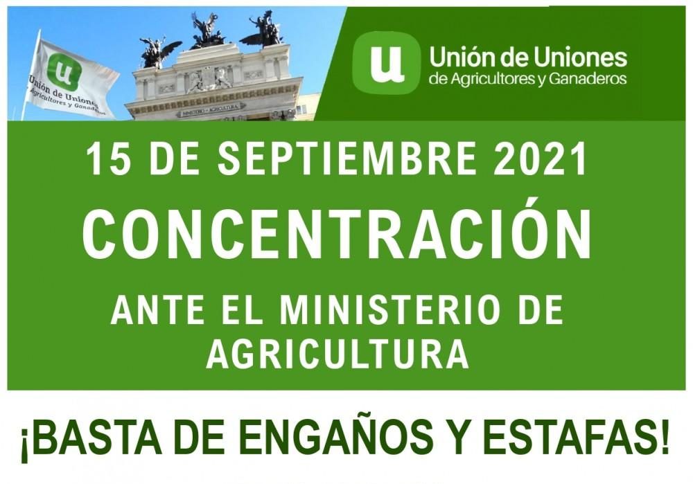 Unión de Uniones de Agricultores y Ganaderos ha convocado a una representación de sus organizaciones territoriales a una concentración, frente al Ministerio de Agricultura en Madrid, en un acto para reclamar una PAC para los profesionales, ya que la propuesta actual de agricultor activo se aleja de ellos y pondría en jaque el futuro y la rentabilidad de quienes principalmente trabajan y dinamizan el medio rural.