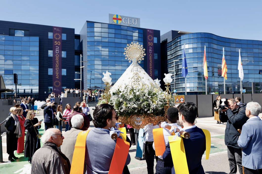 El campus de Castellón de la Universidad CEU Cardenal Herrera ha acogido una doble celebración: la visita de la Lledonera en el centenario de su coronación y los 50 años de trayectoria del CEU en la provincia.