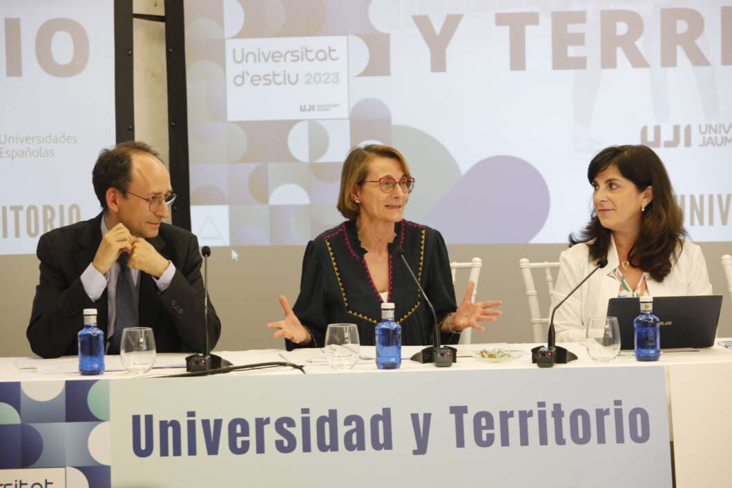 Un altre dels temes sobre els quals s'ha reflexionat en el curs «Universitat i Territori» ha sigut «Reptes de futur universitat-territori». Ho han fet José Luján, rector de la Universitat de Múrcia; Josep Pallarès, rector de la Universitat Rovira i Virgili; José Antonio Mayoral, rector de la Universitat de Saragossa; Àngels Fitó, rectora de la Universitat Oberta de Catalunya, en una taula redona moderada per Pilar Aranda, rectora de la Universitat de Granada.