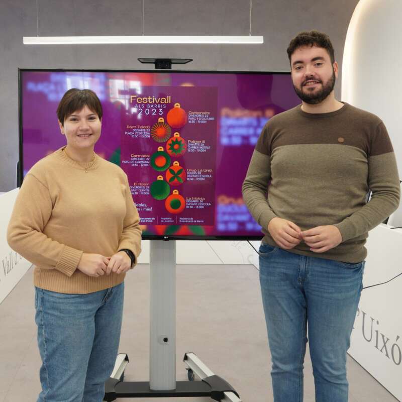 El Ayuntamiento de la Vall d'Uixó ha programado del 22 al 30 de diciembre Festivall als barris. La concejala de Dinamización de Barrios, Zaida Moreno, y el concejal de Juventud, Manel Agea, han presentado esta propuesta de ocio gratuito para los niños y niñas, que llevará a siete barrios hinchables, talleres, animación infantil y un punto de recogida de cartas para Papá Noel y los Reyes Magos.
