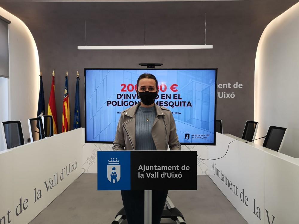 El Ayuntamiento de la Vall d'Uixó destinará 200.000 € a la mejora del polígono industrial la Mezquita a través de una subvención de la Conselleria de Economía, que aporta 165.000 euros. La alcaldesa de la ciudad, Tania Baños, ha recalcado que "esta inversión se encuentra dentro de los objetivos y de los ejes más importantes que el gobierno de la ciudad se marcó para esta nueva legislatura, que es el desarrollo industrial".