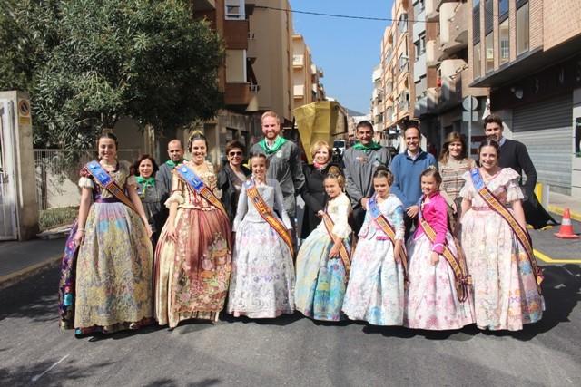 El alcalde de la Vall d'Uixó, Óscar Clavell, acompañado de la fallera mayor infantil de la ciudad, Claudia Sánchez, ha visitado esta mañana la cremà de la falla del Hogar Sagrada Familia.