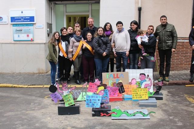 El alcalde de la Vall d'Uixó, Óscar Clavell, ha visitado esta mañana la falla del Grupo de Los Martes, que cada año elabora y quema este grupo de jóvenes valleros en los alrededores del centro social Les Llimeres.