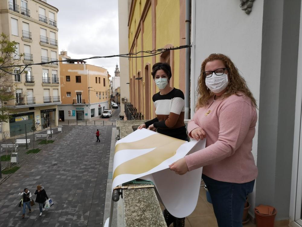 Esta mañana, de la mano de las asociaciones Aspanion y Sonriendo con Martín se han colgado dos pancartas desde el balcón de la Casa de la Vila para dar visibilidad a estas enfermedades.