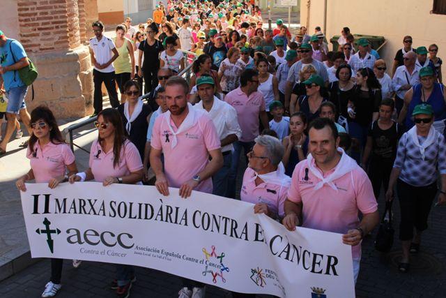 Alrededor de 2.500 personas han participado esta mañana en la II Marcha Contra el Cáncer - Festes del Roser que durante casi una hora ha recorrido las calles de la Vall d'Uixó. La marcha de hoy ha sido un acto por la vida y por la esperanza, "como nos indicó el que hasta ahora era nuestro presidente, Esteban Esteve", ha asegurado Quini Bañuls desde la junta local de la Asociación Española Contra el Cáncer.