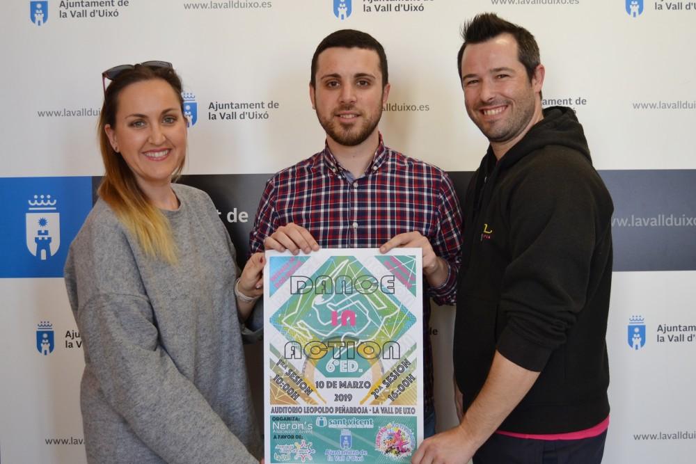 El 10 de marzo más de 400 bailarines y bailarinas de todas las edades se darán cita en el Auditori de la Vall d’Uixó para participar en el VI Campeonato Coreográfico Dance In Action, que tiene carácter benéfico y que han presentado el concejal de Juventud y Deportes, Higi Daniel, y los organizadores, Domingo Sánchez y María Jesús Iglesias.