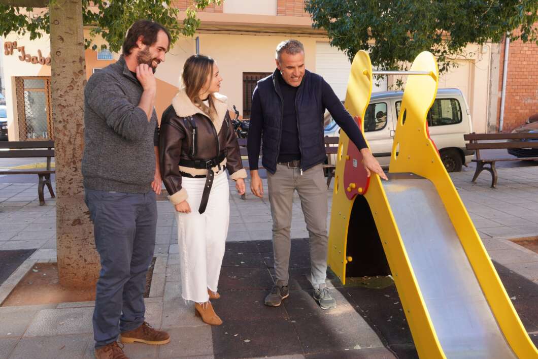 La alcaldesa, Tania Baños, ha visitado los trabajos que se han realizado en la plaza de l'Assumpció junto al concejal de Medio Ambiente, Marc Seguer, y al concejal de Urbanismo, Vicente Pitarch. En este espacio se han sustituido todos los juegos menos el columpio por otros de material fenólico, que es más seguro. Respecto al columpio adaptado, desde el consistorio afirman que será sustituido próximamente ya que fue vandalizado.