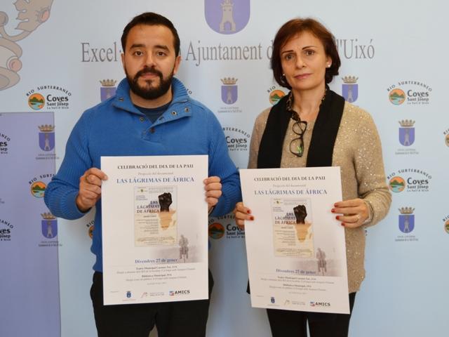 El concejal de Servicios Sociales y primer teniente de alcalde, Antoni Llorente, y la presidenta de Amics de la Vall, Roser Diago, han presentado el acto para conmemorar el Día de la Paz que el Ayuntamiento de la Vall d'Uixó, Amics de la Vall y la Agència Amics han coorganizado, con la proyección del documental 'Las lágrimas de África'.