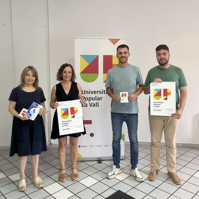 El Ayuntamiento de la Vall d'Uixó ha presentado la Universitat Popular 2023-2024, que por tercera edición consecutiva apuesta por un modelo transversal e intergeneracional. El concejal de Servicios Sociales y Cultura, Jorge Marqués, ha dado a conocer los detalles junto a los ediles de Deportes y Juventud, Mar Arzo y Manel Agea, respectivamente; así como de la directora del CFPA Jordi de Sant Jordi, Azucena Badenas.