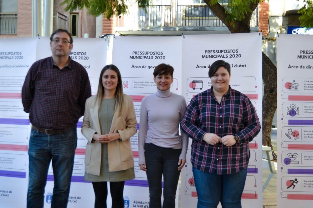 La alcaldesa, Tania Baños, los tenientes de alcaldesa, Carmen García y Fernando Daròs, y la concejala de Hacienda, Zaida Moreno, han presentado las líneas generales de un presupuesto “de continuidad, responsable y que nos ha llevado mucho trabajo y mucho esfuerzo para hacer que la Vall d’Uixó siga avanzando”. “Sin aumentar la recaudación vamos a dar continuidad al proyecto común iniciado cuatro años, atendiendo a las necesidades de las personas y continuando con la reducción deuda municipal, que ha bajado de 26 millones de euros a 15 en estos cinco años”, han destacado.