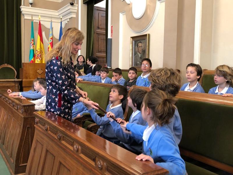 Alumnos de Segundo de Primaria del Colegio Sanchis Yago han visitado esta mañana el Ayuntamiento de su ciudad, Castellón. Lo han hecho acompañados por sus profesores y, además, han podido reunirse con la primera autoridad municipal y ser parte activa de una de las salas más importantes del edificio Consistorial, el Salón de Plenos.