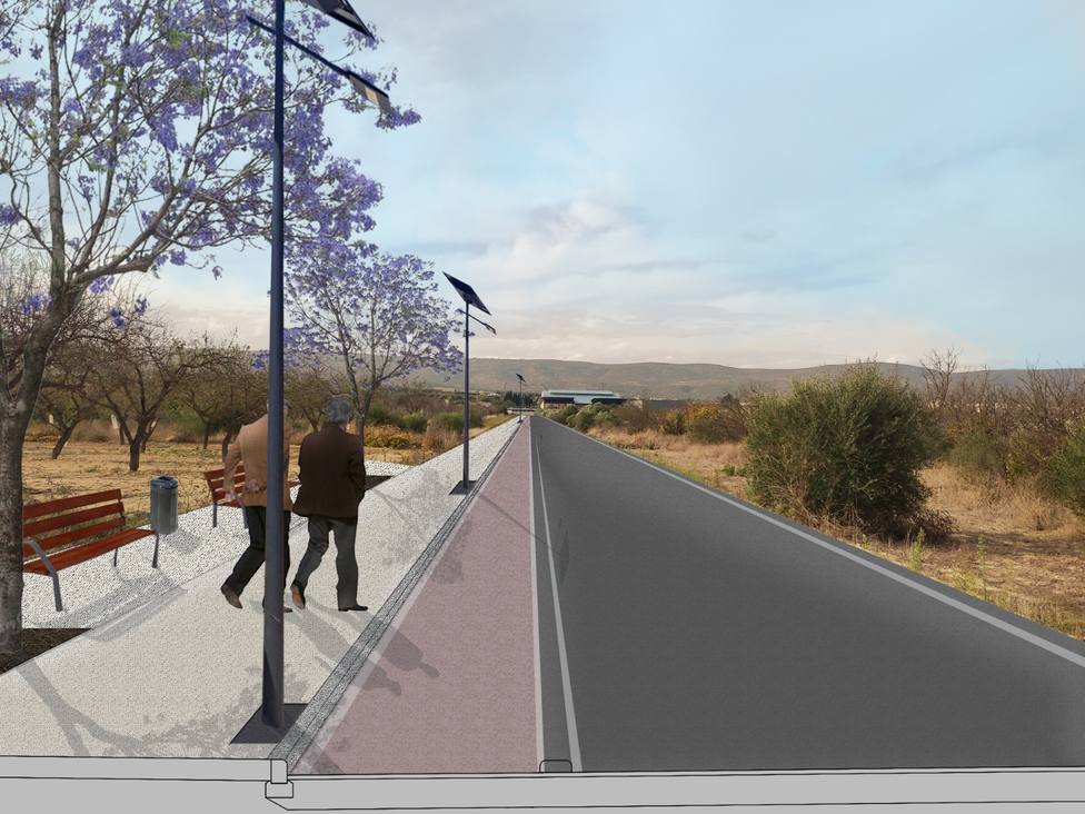 L'actuació planteja com a objectiu prioritari fomentar la connexió entre els dos nuclis urbans del municipi a través de vial de mobilitat sostenible, prioritzant els itineraris per als vianants i ciclista. A més es dotarà d'una il·luminació eficient energèticament, diferenciant entre la calçada i les zones reservades a vianants i bicicletes. El vial té el seu inici al camí San Miquel, partint de les instal·lacions esportives ja existents.
