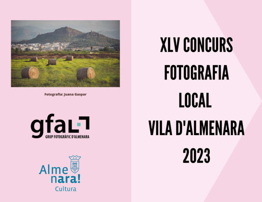 Fins al pròxim 28 d'octubre a les 12 de la nit està obert el termini per a presentar les col·leccions fotogràfiques participants en el XLV Concurs de Fotografia Local Vila d'Almenara organitzat pel Grup Fotogràfic d'Almenara (GFAL) amb el patrocini de l'Ajuntament d'Almenara. Com de costum, les fotografies que es presenten al concurs han de tindre una temàtica basada en Almenara, per la qual cosa podran presentar-se col·leccions de paisatges, naturalesa, edificis, monuments, activitats, festes o costums locals. Les imatges podran ser en monocrom (blanc i negre o virats) o a color, amb tècnica lliure. El premi a la millor col·lecció seran 250 euros, 100 a la segona i 50 al tercer premi.