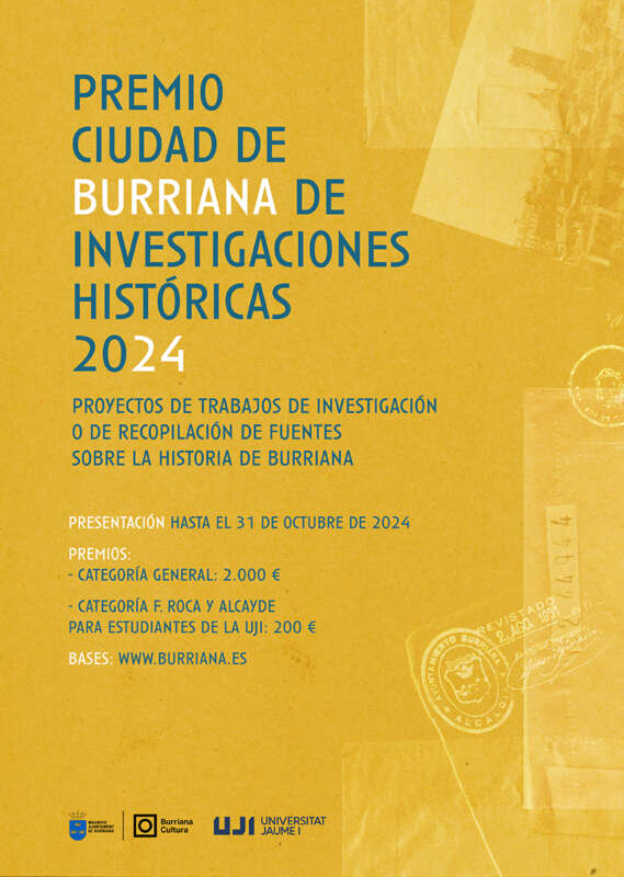 El termini d'inscripció de projectes en els 'Premis Ciutat de Burriana 2024' està arribant a la seua fi. Esta iniciativa té com a objecte fomentar l'estudi i la investigació sobre la documentació o materials històrics relacionats amb la història local de Burriana.