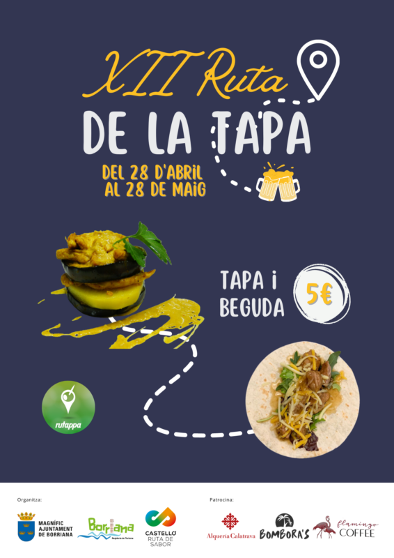 La dotzena edició de la Ruta de la Tapa se celebrarà del 28 d'abril al 28 de maig de 2023, dins de l'horari que cadascun dels establiments participants indique en el full d'inscripció, i abastarà el cap de setmana de les Creus de Maig a Borriana.