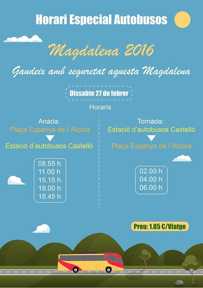El Ayuntamiento de l'Alcora pondrá en marcha este sábado 27 de febrero un servicio especial de autobuses con motivo de las fiestas de la Magdalena.