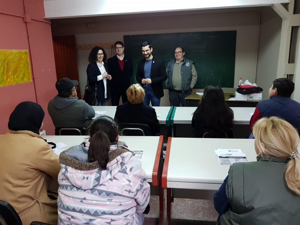 L'alcalde, Samuel Falomir, el primer tinent d'alcalde, Víctor Garcia, i la regidora d'Ocupació, Nuria Sánchez, han visitat aquest matí als integrants d'aquesta primera brigada a l'aula de formació.