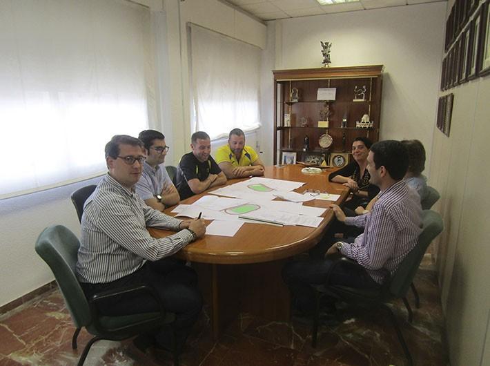 El alcalde de l'Alcora, Víctor Garcia, la concejala de Deportes, Ana Huguet, y el concejal de Urbanismo, Samuel Falomir, se han reunido con el director técnico deportivo y otros representantes de la Escuela de Atletismo de l'Alcora y con los técnicos municipales, para abordar el proyecto de la futura pista de atletismo de la localidad.