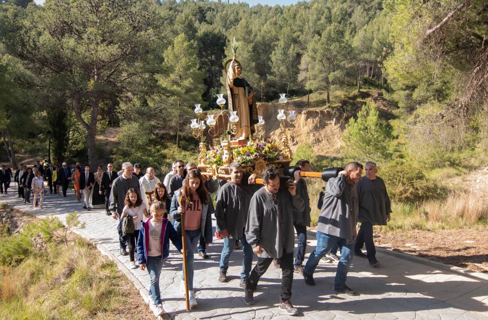 La jornada ha començat amb el trasllat del sant des de l'església parroquial fins a l'ermita alçada en el seu honor. L'ancestral romeria, presidida pel clero, la corporació municipal i la cort d'honor, ha partit a les 9 hores. Com és costum, l'acompanyament musical ha estat a càrrec de l'Agrupació Musical l'Alcalatén, i l'animació, de la Colla de Gegants i Cabuts. Enguany, la Hemandad del Santísimo Cristo del Calvario ha portat la peanya del sant.
