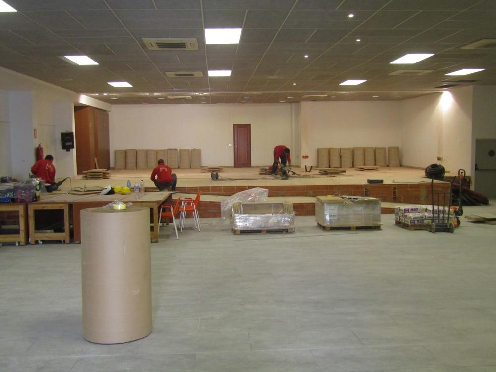 Entre las actuaciones contempladas en el mismo, que ya se están llevando a cabo, se encuentran: sustitución del suelo existente por uno antideslizante, adecuándolo así a la normativa; cambio de la rampa de subida al escenario, cumpliendo con la normativa en relación a la accesibilidad; cambio de los aseos; ampliación del escenario; y pintura de las paredes, entre otras. Asimismo, en el proyecto se incluye la mejora de la eficiencia energética, sustituyendo las luminarias existentes por otras tras luminarias de tecnología LED.